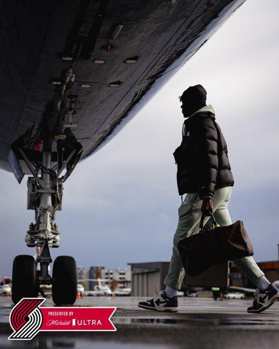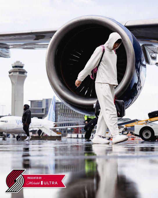 开拓者官方社交媒体今天分享球队出发照,杨瀚森出镜。
