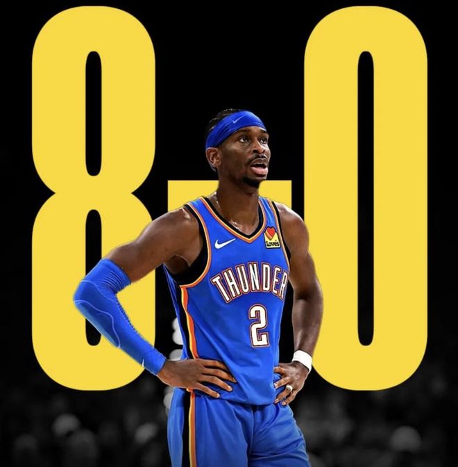 拿下这场比赛之后,卫冕冠军雷霆本赛季的战绩来到8胜0负,100%的胜率继续稳坐全联盟第一。而SGA亚历山大在面对老东家时打出了完美的表现,不仅帮助球队赢得了胜利,更是在收获单场30分的同时迎来个人里程碑,这是他连续第80场比赛得分超过20分,这让他超越“大O”奥斯卡·罗伯特森位列历史第三,排名前两位的纪录均由“上古大神”张伯伦创造,分别是92场和126场,如果SGA的状态足够稳定,那么这一纪录极有可能在本赛季被打破。